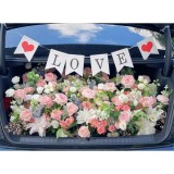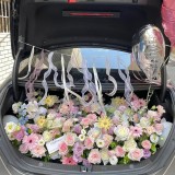 1: 后备箱布置,轿车。按图上花材布置, 开车到店,距离十公里内 需要横幅跟灯带 ,购买数量:1