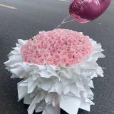 1: 199朵粉雪山玫瑰花束+2个气球 【一切如图制作,如图包装,做好留图,包大气丰满一点,花朵大小均匀,不开的不要,按时送达,花材一定要新鲜,保证质量,避免售后,高度还原图片】 ,购买数量:1;