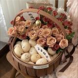 11朵香槟玫瑰+洋甘菊+尤加利 1串灯 花材饱满 如图包装 回图#1、花都是下单后现做的,1-3小时左右送达,可以备注送达时间(节日只保证当天送到!)请勿匿名下单 谢谢2、本店都是当天的新鲜花材,如图包装制作,9成相似(部分缺货可能会用相似或同等价值替换)3、如需查询配送进度可以联系我们哦。(不是骑手配送看不到物流信息呢)4、我们免费赠送一张卡片,需要的下单请备注卡片内容!(未留不送哟~)