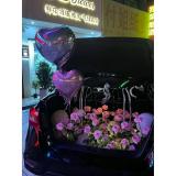 1: 顾客开车到店(如图布置。66朵洛神+满天星铺满+气球➕2个飘空气球➕丝带蝴蝶结➕氛围灯,按图片布置出一样的效果,花材饱满新鲜,不要少花,避免售后问题,能做再接单 ,购买数量:1