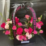 1: 如图手提花篮:6朵弗洛伊德+如图霸王茶姬奶茶+如图足量苏菲泡泡+足量折射泡泡+绿铃草+下插花泥+贺卡打印+如图包装,制作饱满,务必如图一致, 拍照留底【花枝不要剪太短】 ,购买