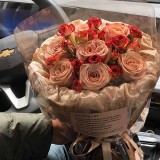 1: 颜色分类:【主图热卖】9朵卡布奇诺玫瑰+泡泡花束 X 1 ,购买数量:1;