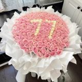 1:99朵白玫瑰喷图片色,加两个空飘气球,花材要新鲜饱满,按图片制作,数量准确,做好留图,高度还原避免售后,准时送达 ,购买数量:1 ,图片数量:1 ;