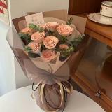6朵戴安娜+5朵香槟玫瑰+浅粉满天星+栀子叶,按图包装,满天星要新鲜丰满,做好返图,今晚11点左右送到