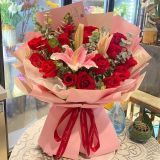 1: 19朵红玫瑰+2支粉百合 加灯 保质量 ,购买数量:1;