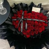 1:52朵红玫瑰 丝带 蝴蝶结 如图制作 花材新鲜饱满,购买数量:1;