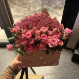 【【11朵粉玫瑰搭配一朵蓝绣球白桔梗喷泉草一束】(1份)】