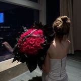 颜色分类:199朵红玫瑰花束 X 1。 199朵红玫瑰 加3条小夜灯 加三个白色蝴蝶结 加多层白色黑边包装。务必多层包装 做出图片效果 玫瑰选开的大的 花娃传图 保证质量 避免售后