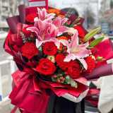 1: 【喜庆款】19朵红康红玫瑰+6朵粉百合 ,购买数量:1;