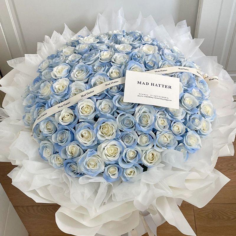 1:+灯串n花朵开放度较好 不要小花n99朵碎冰蓝玫瑰花束n花材务必新鲜 饱满 按图款式制作 做好回图 ,购买数量:1 ,图片数量:1 ;