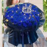 1: 99朵蓝色妖姬干花+小皇冠+灯串花束 做大气 饱满一点 按图款式制作 做好回图 ,购买数量:1;