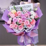3朵向日葵+5朵香槟混搭花束+多头玫瑰+桔梗 如图配花丰富 如图包装 按图制作丰满大气 一定做好留图 未来可期