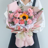 1: 1朵向日葵+11朵康乃馨 (配送前打电话) 加小夜灯 按图包装(花一定要新鲜大气 不要有黑边) ,购买数量:1;