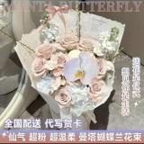 4曼塔+4白玫瑰+紫色绣球+白色洋桔梗+翠珠(部分紫色)+蓝星花 蛋糕卷内衬 玻璃纸包装 如图效果包装 严格如图还原制作 做好返图 顾客要看需不需要调整