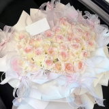 1:33朵白玫瑰喷色 心形 按图还原花要新鲜避免售后小 ,购买数量:1 ,图片数量:1 ;