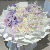 1: 【爱你一辈紫】52朵玫瑰+绣球混搭花束 +花材如图+凯蒂猫+蝴蝶结如图+如图插满+卡片+包装如图+如图制作 谢谢 ,购买数量:1;