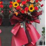 1: 花材丰满大气,送到拍照回图(配花点图2大图看下尽量都有) 花材:18朵红玫瑰(大朵)+2朵向日葵(大朵)+2支粉色紫罗兰+12朵复古色康乃馨(如图)+点巧克力泡泡和橙色芭比间插点缀,如图细叶尤加