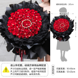 1: 99枝红玫瑰、1个皇冠(款式随机)、15~20颗珍珠,灯串,包装:黑色星月纱、黑色方格纱、黑色韩素纸 ,购买数量:1 ,图片数量:2