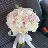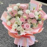 1: 11枝曼塔玫瑰,8枝白雪山玫瑰,6枝白色康乃馨搭配,2枝白桔梗,2枝喷泉草 ,购买数量:1 ,图片数量:1