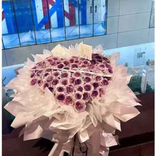 (52朵)加2条小夜灯(开着送过去) 52朵乌梅子酱-曼塔喷色(务必爱心包装),中间拉根白色细字母丝带,白色内衬纸内包+白色纸如图一样多层外包,制作效果如图(务必如图显大)