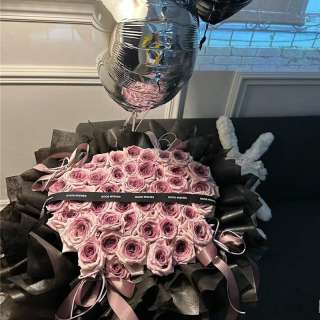 颜色分类:池归】(52朵乌梅子酱玫瑰花束-染色-送气球) X 1 【如图制作 新鲜 饱满大朵 不要少花材 做好拍照 】